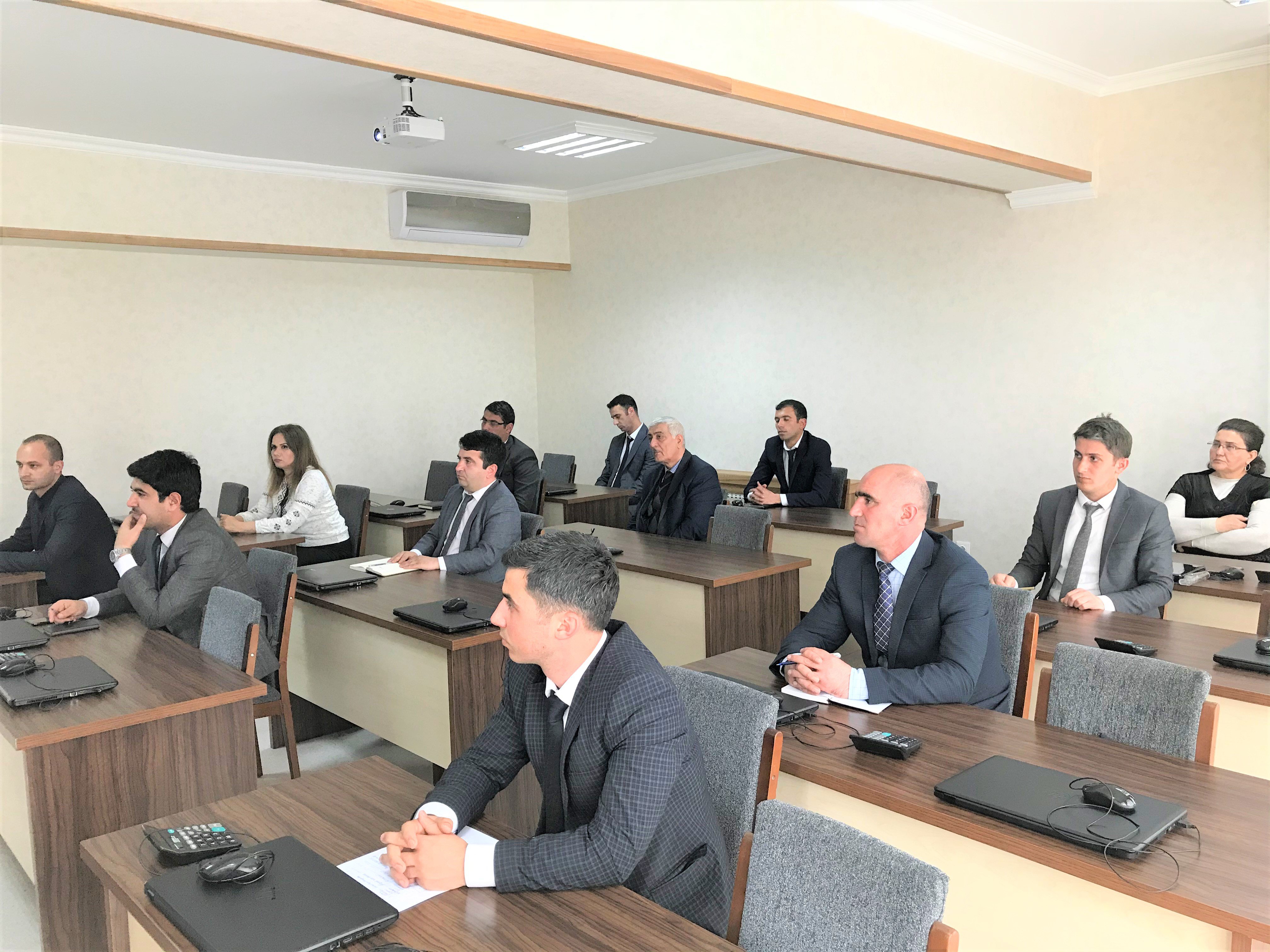 Təlimin üçüncü günü “Büdcə təşkilatlarında vergi uçotunun təşkili” adlı mövzu ətrafında Naxçıvan Muxtar Respublikasının Dövlət Vergi Xidmətinin Babək Rayon Vergilər İdarəsinin mühasibat uçotu və təsərrüfat bölməsinin rəisi-baş mühasibi Cavid Ələkbərovun təqdimatında vergilərin ödənilməsinin ümumi qaydaları, sənəd dövriyyəsinin təşkili, vergi hesabatı sənədlərinin və vergi uçotu registrlərinin saxlanması, vergi uçotunun analitik registrlərinin tərkibi, vergi bəyannamələrinin, hesabatlarının tərtib edilməsi və göndərilməsi qaydalarının dinlənilməsi nəzərdə tutulub.